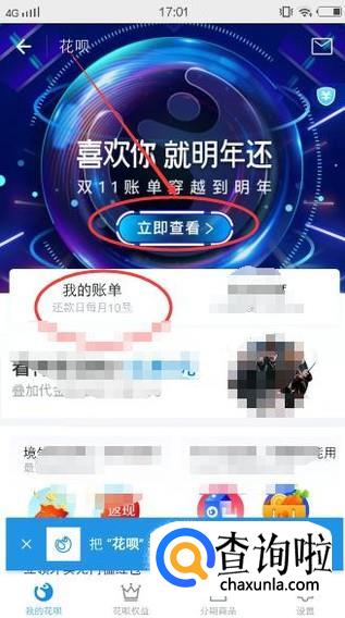 可以看到【账单穿越到明年】,点击【去看看】按钮,如下图所示: