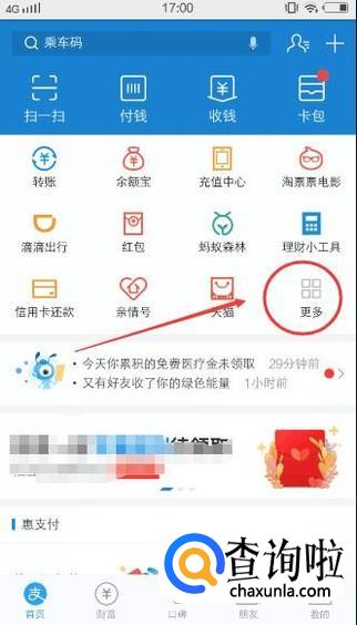 打开支付宝,然后点击【更多】,如下图所示: