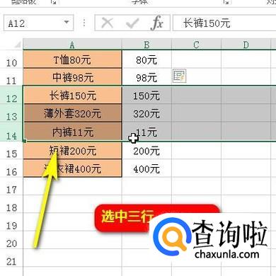 比如,想在表格中插入三行;那么,我们就要选中三行