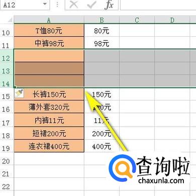 比如,下图中的表格。要把A10:A16这区域单元格内的价格提取到B10:B16中