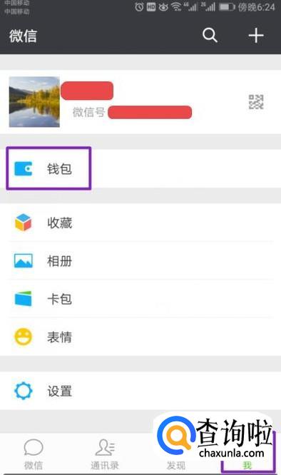 进入微信后,我们点击右下角的我,然后点击钱包;