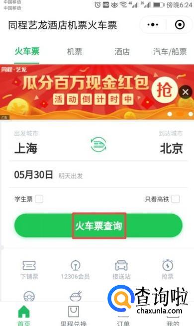 然后我们根据我们的需求进行选择地点,之后点击火车票查询;