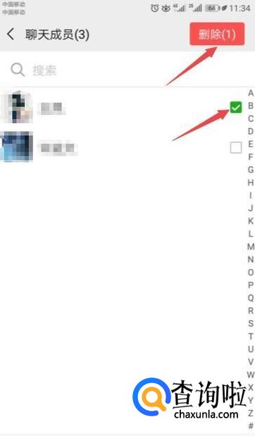 之后选中想要踢的人,然后点击删除;
