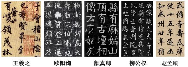 赵孟頫(1254-1322):字子昂,号松雪,松雪道人,吴兴(今浙江湖州)人。他善篆、隶、真、行、草书,尤以楷、行书著称于世,《元史》本传讲,“孟頫篆籀分隶真行草无不冠绝古今,遂以书名天下”。元鲜于枢《困学斋集》称:“子昂篆,隶、真、行、颠草为当代第一,小楷又为子昂诸书第一。”其书风遒媚、秀逸,结体严整、笔法圆熟、世称“赵体”。代表作《玄妙观重修三门记》。
