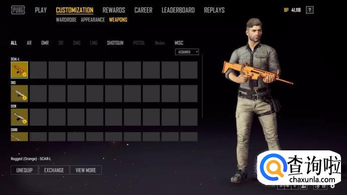 登入游戏界面,可以查看到我们目前所拥有的武器皮肤数量有哪些,有些枪支的皮肤为默认,有些皮肤为自定义的枪支皮肤。