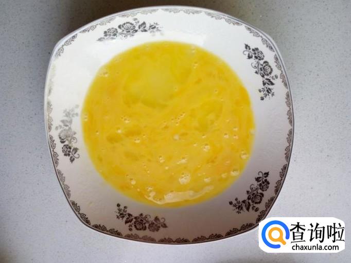鸡蛋打入盘中,搅拌成鸡蛋液。