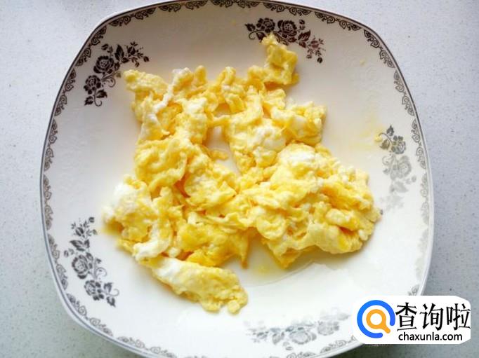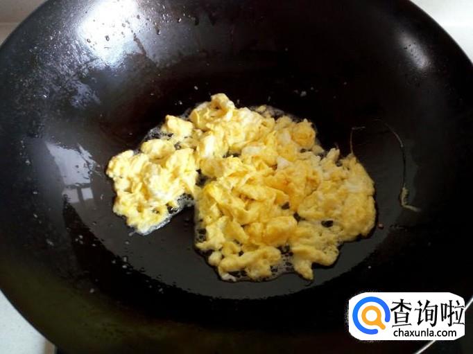 用锅先把鸡蛋炒出来,炒至七分熟,盛出备用。