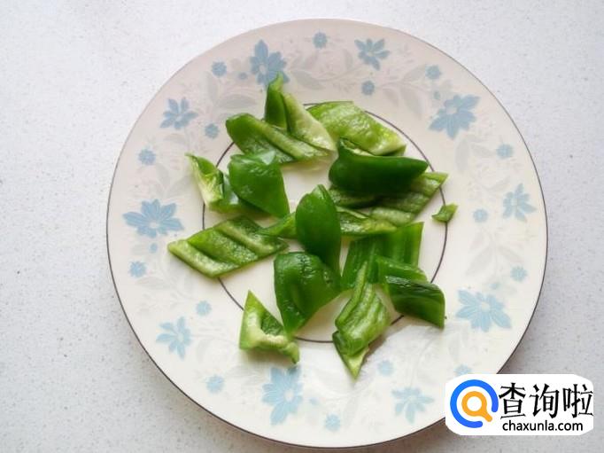 青椒用水清洗干净,控干水分,切成片。切好葱,姜,备用。