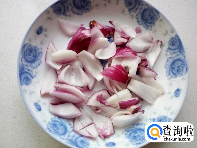 圆葱去皮,用水清洗干净,控干水分,切成片。