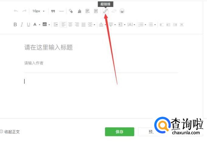 进入新建图文消息页面后,点击上方工具栏中的的“超链接”