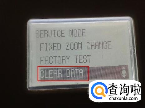 在维修模式下使用上下方向键选择“CLEAR DATA”选项。