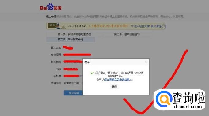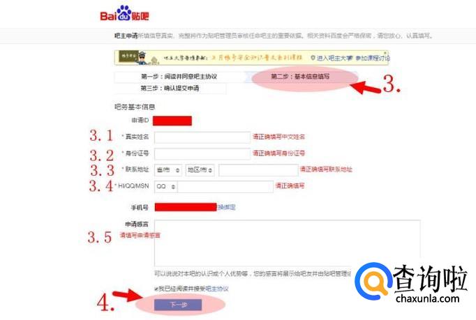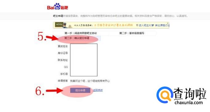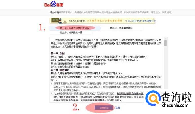 成功入驻贴吧并达到其要求即可申请。以下为详细步骤(图一:阅读并同意吧主协议,图二:填写详细、真实信息,图三:核对无误后点击提交申请)。(备:请详细阅读吧主协议,以后管理会用到)