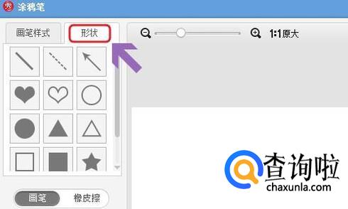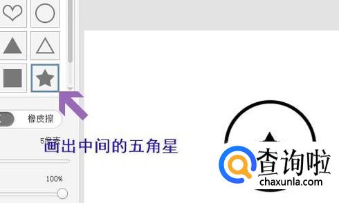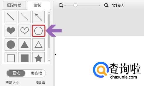 在新跳转到的涂鸦笔画布上,我们点击左上角的“形状”,然后首先选择一个圆形作为公章的外圆轮廓,效果如下图所示...