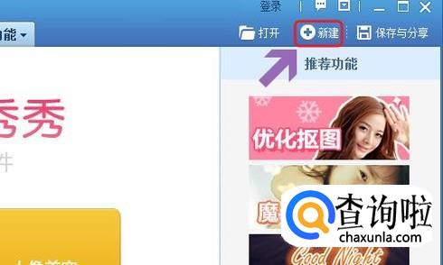 打开电脑版美图秀秀以后,我们点击软件最右上角的“新建”选项,如图...