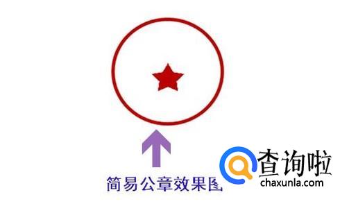 然后按照同样的方法在外圆内部画出五角星图标,不过由于公章的外圆和五角星一般来说都是红色的,所以我们可以通过左下角的颜色来给图标更改为红色,最终效果如图三;