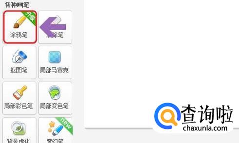 选好以后点击应用,此时页面上就看到了类似PS的白色画布,接着点击左侧工具里面的“涂鸦笔”;