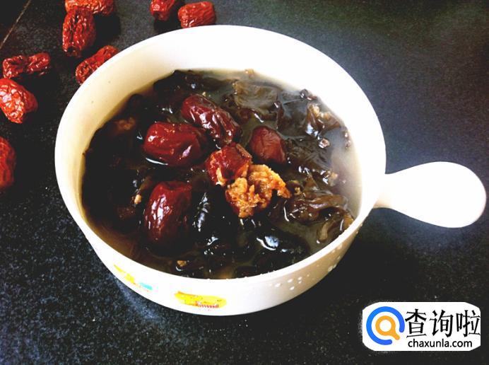 黑木耳煲红枣。用法:每日1次,连服数日。功效:养血和血止血。制法:将黑木耳、红枣放瓦锅内,加适量水煎汤。配方:黑木耳15克;红枣20枚。