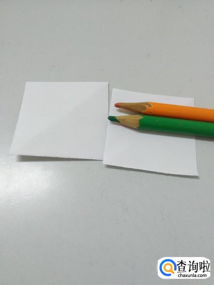 准备两张正方形的纸、两支彩笔和一把剪刀。