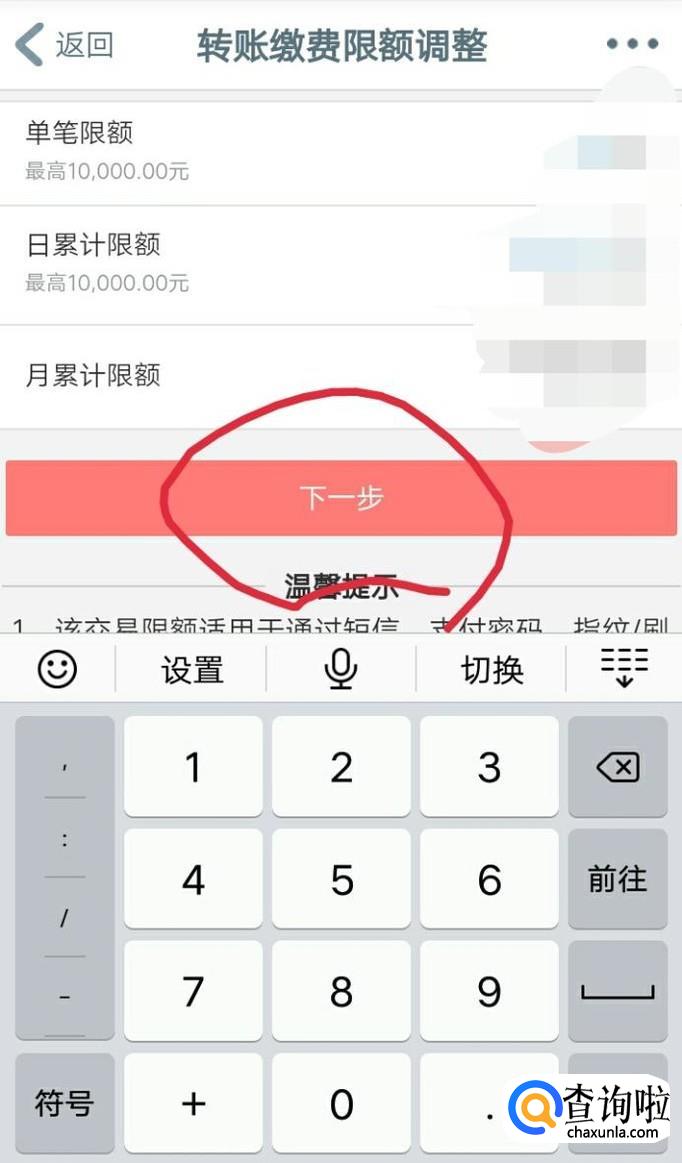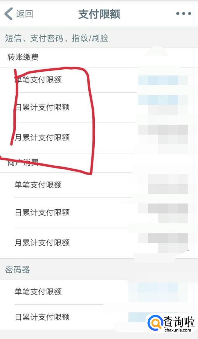 里面可以看到各种支付限额,点进去设置即可,可以自己更改限额。
