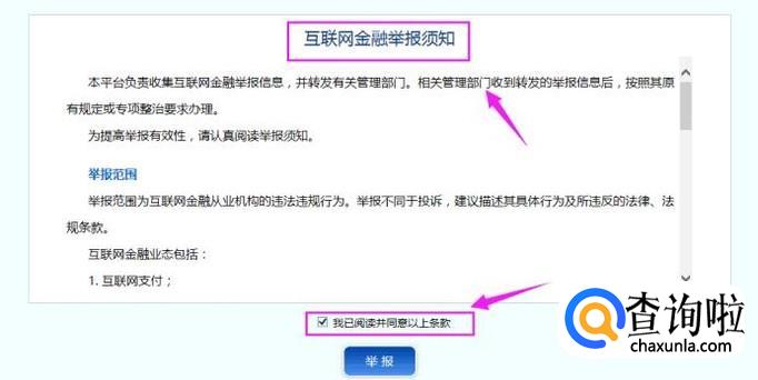 我们接着点击“举报”,同意条款,如图所示。