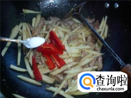 将高笋放进锅里快速翻炒,因为焯过水所以很快就熟了,加上一些食盐调味,加点味素出锅就行了,喜欢吃辣的,放些红辣椒也可以,味道更浓。