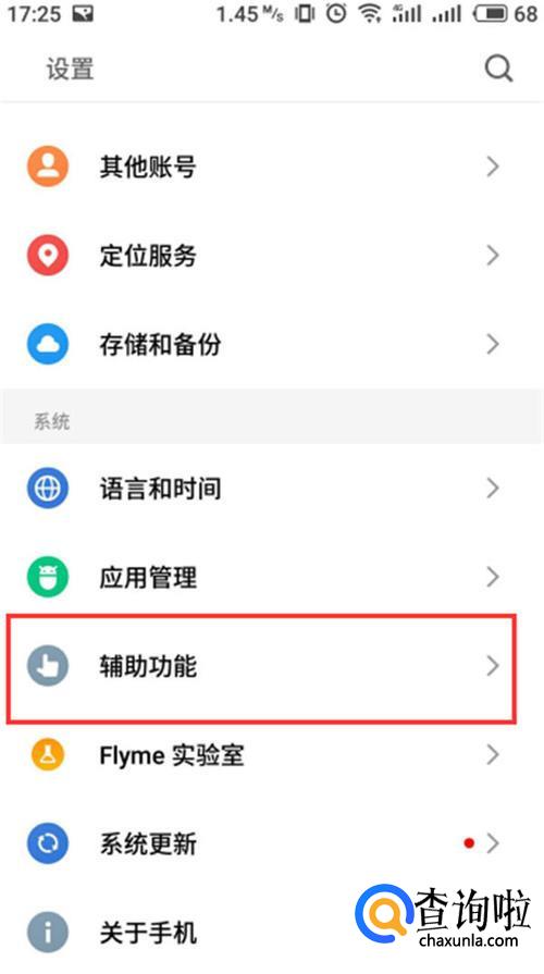 下拉,找到并点击 辅助功能