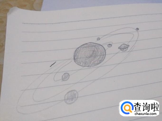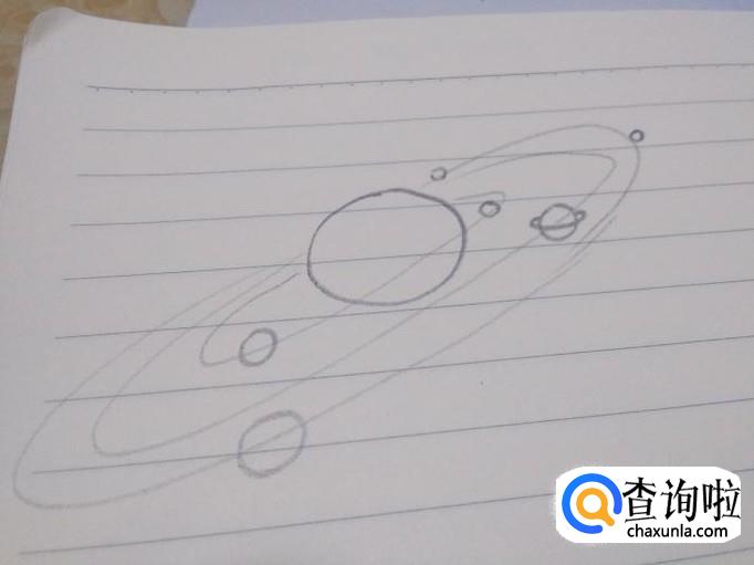 在太阳的周围画上其他星体的运动轨迹,将椭圆形依次画出。