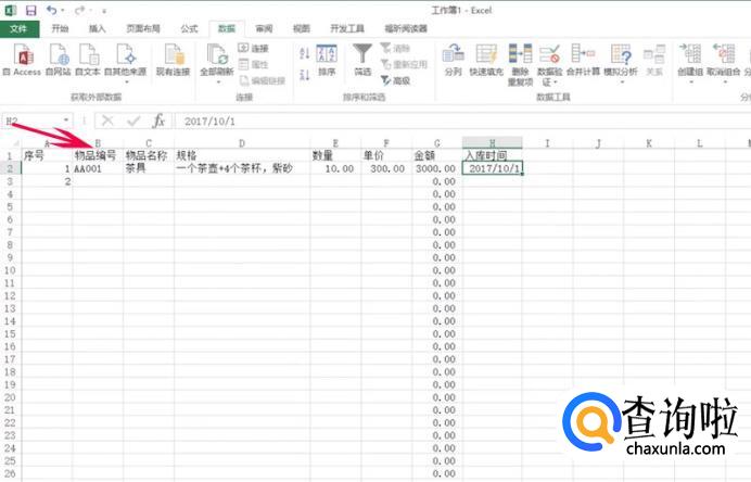 在库存表中,我们需要设置序号、编号、谷歌、物品名称和数量几个类目,单元格的设置也要符合相应类目的输入习惯。