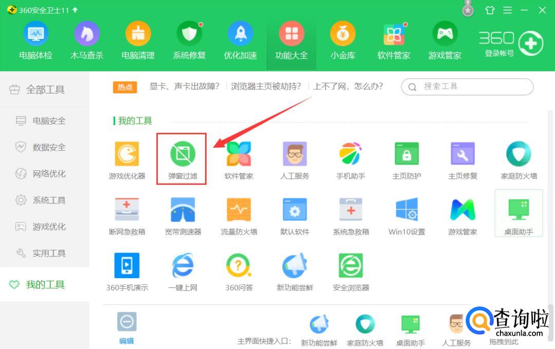 然后点“我的工具”,我的工具页面里点击“弹窗过滤”,如下图:
