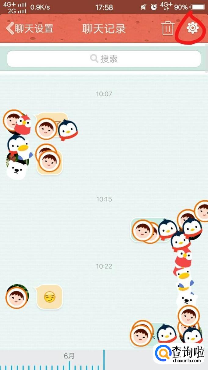 接着,我们点击右上角的人的头像,然后再点击“聊天记录”。