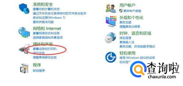 接下来选择设备和打印机面板。