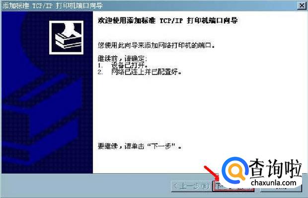 然后在“添加打印机向导”的对话框点击”下一步“按钮。