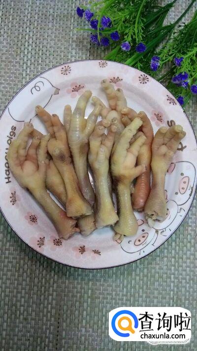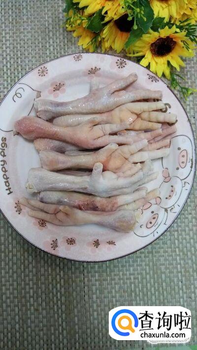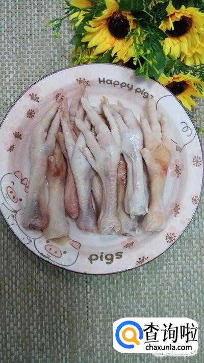 准备适量鸡爪,解冻后洗净,去除指甲,放入盘中备用。