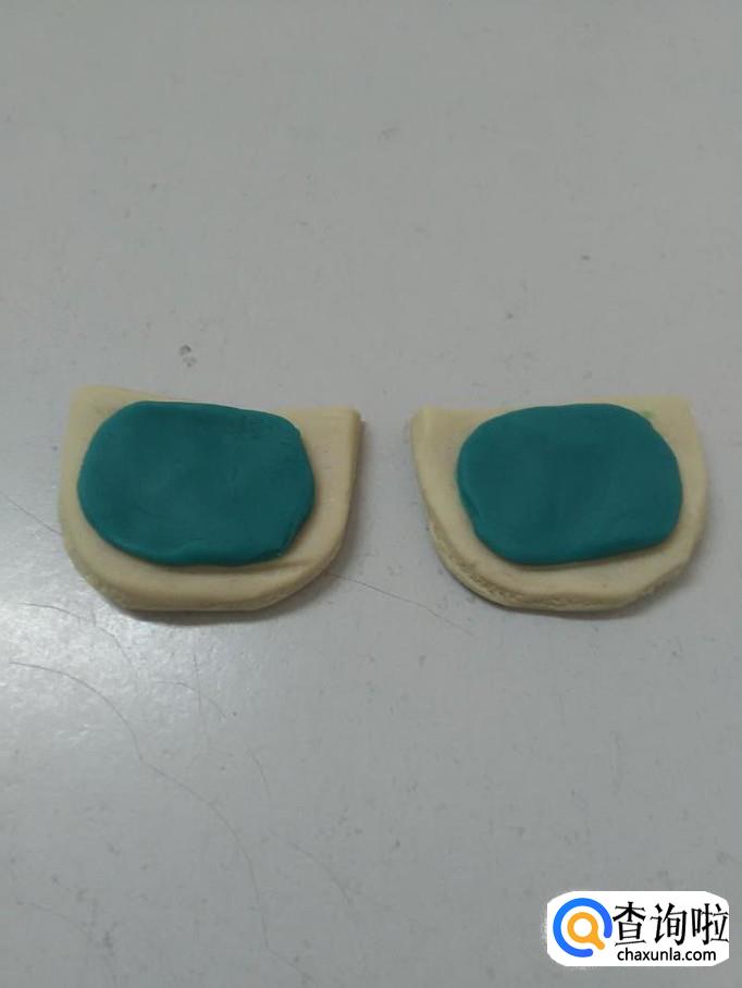 用白色捏两个半圆形,当作眼镜框。