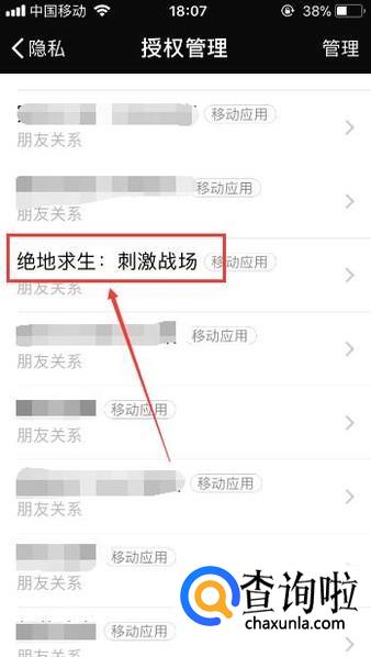 进入到【授权管理】页面后再点击绝地求生:刺激战场。