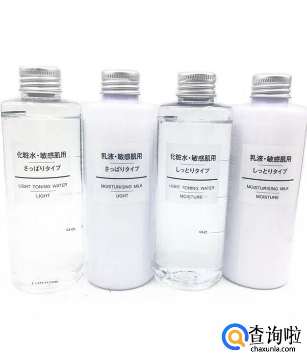 无印良品水乳:是日本的产品,特别适合敏感肌的肤质使用,该水乳成分很天然,补水保湿效果很好。