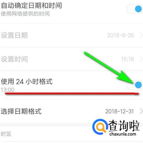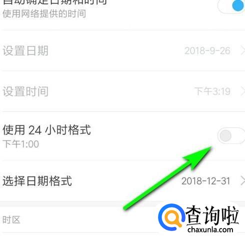 反之,若想关闭24小制格式的,手指再点一下开关位置,使之变成灰色即可。