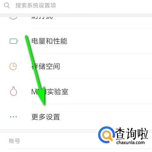 手指点一下手机桌面上的设置图标,打开手机设置界面。在界面中找到并点击:更多设置