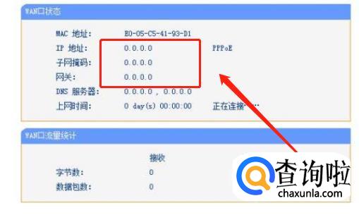 成功登录路由器管理界面后,可以查看到当前拨号状态是否正常,如果WAN口状态看到是一串 0.0.0.0的字样,就是不正常的。