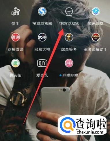 打开手机,找到铁路12306,点击并进入,如图所示。