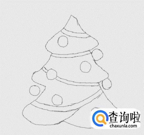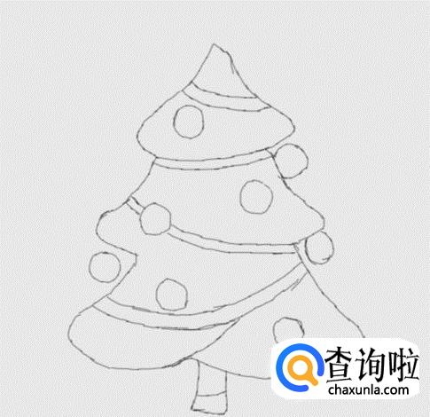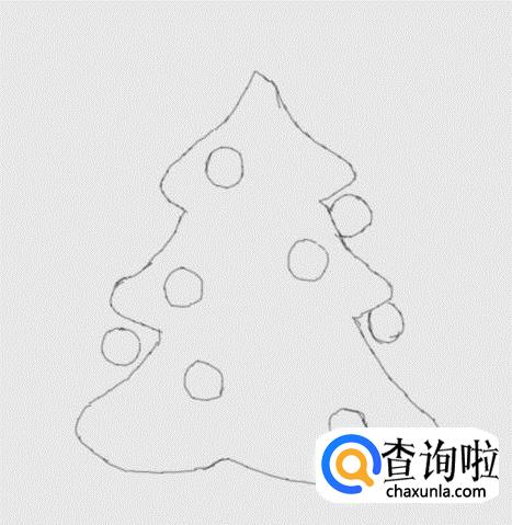 在圣诞树的上面画出圆形作为圣诞树上的小灯泡,如图所示: