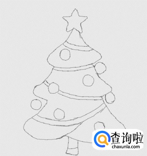 再在圣诞树上我们再画出圣诞树上的电线如图所示:
