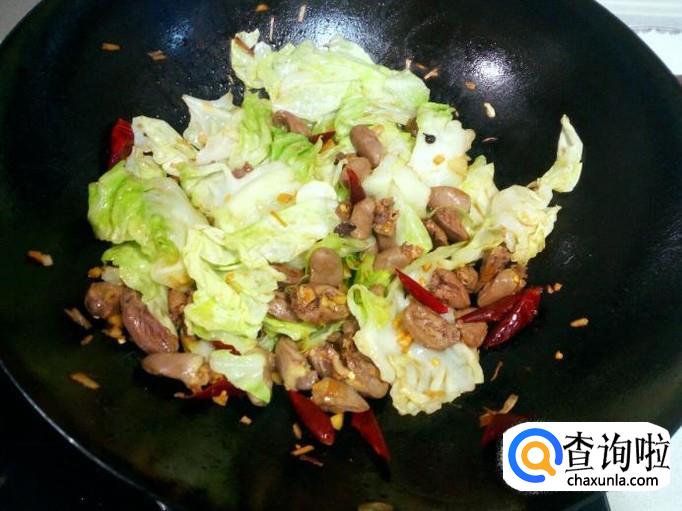 鸡心略翻炒即可,放入大头菜大火爆炒,放入盐。大头菜炒至断生,放入味精,关火出勺。