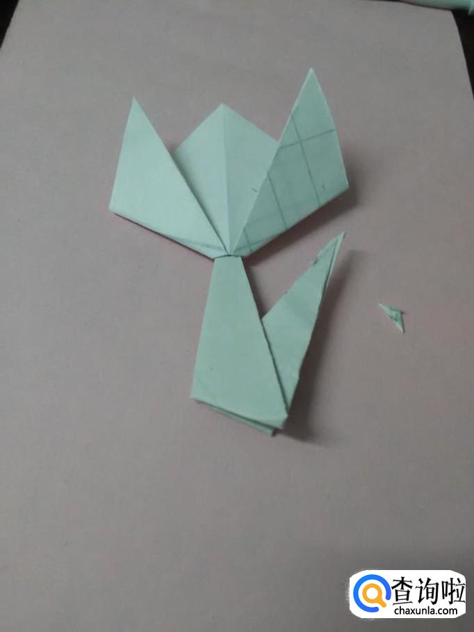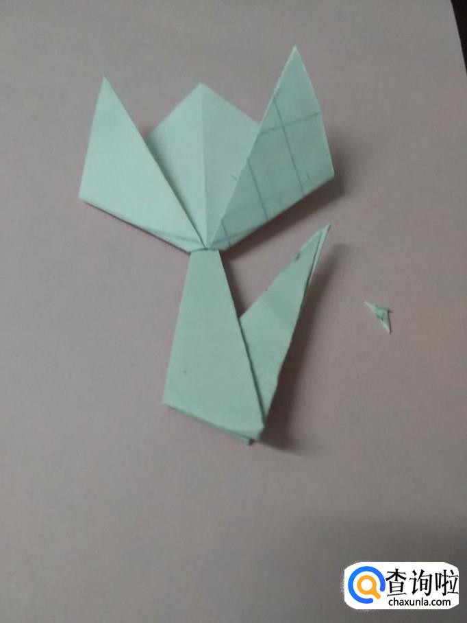 用剪刀将花朵下方剪掉一个小尖,将茎尖插入花朵下方的小孔中,一朵花就折好了。