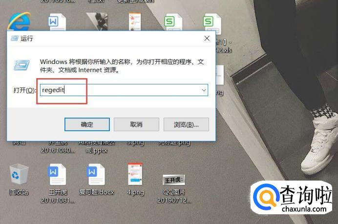 在电脑桌面按‘window+R',然后在对话框里面输入命令“regedit”。