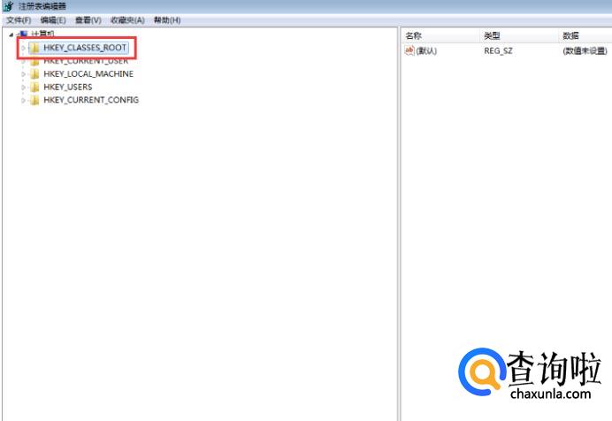 输入命令之后会弹出注册表编辑器的管理窗口,在注册表编辑器窗口中找到并点击“HKEY_CLASSES_ROOT”选项。
