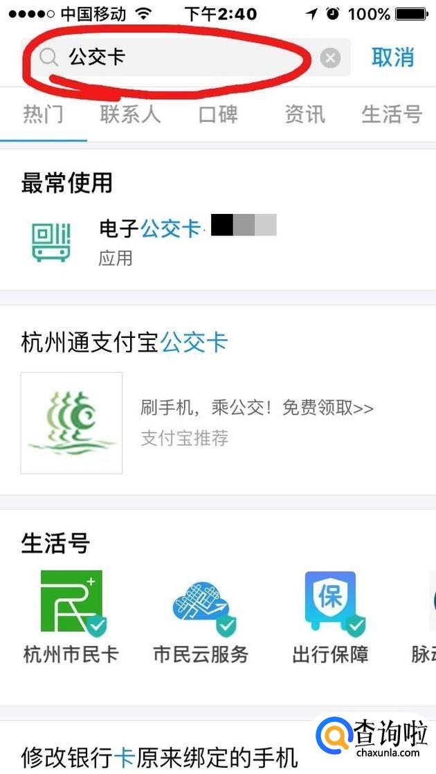 我们打开支付宝手机APP,在支付宝首页的搜索栏中搜索“公交卡”,就会出来本地的电子公交卡应用,这个电子公交卡如果没有注册过,需要注册,注册方式很简单。