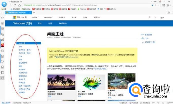 在这里我们可以很直观的看到我们已经下载好的桌面壁纸主题;我们点击后面的“联机获取更多的主题”,来这里下载壁纸。