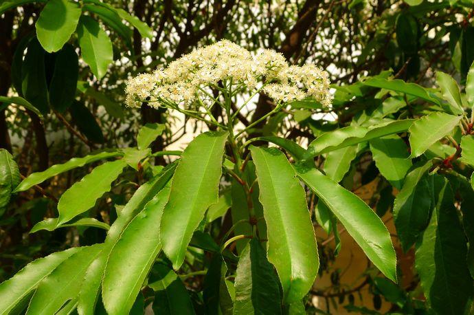 石楠花的观赏价值很高,其叶子一年四季常绿,种植在校园中可让其充满绿意与生机,并且四季其景观有所不同。在春季石楠花会开出白色的花朵,而夏季则主要对其绿叶进行观赏,等到秋季又会结出红红的果实。