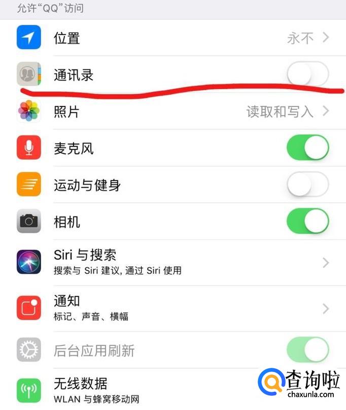 点进去以后我们可以看到是允许QQ访问的项目,找到通讯录,把它开启。